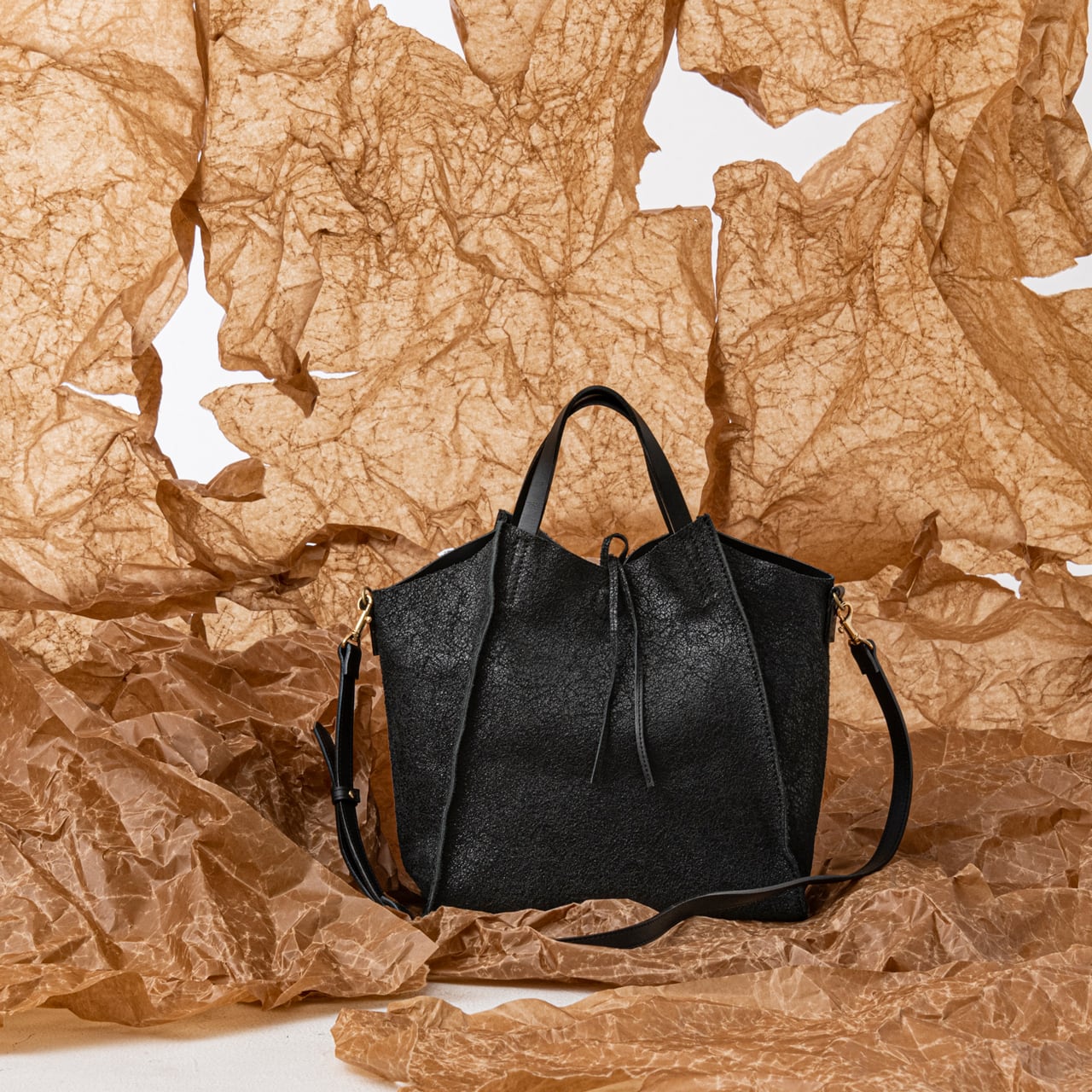 大人な印象のクラッキングレザーが目を惹く2wayバッグ。